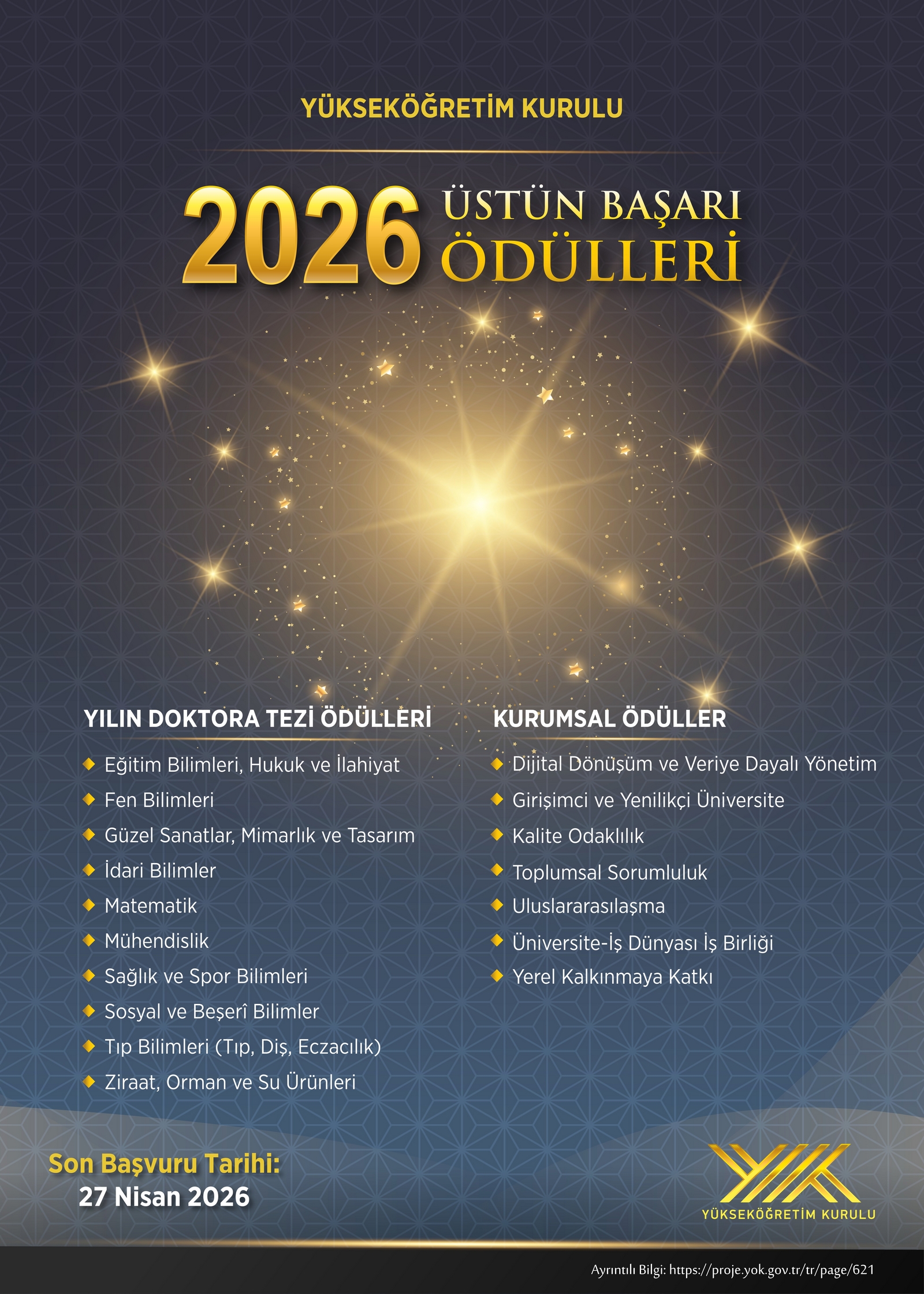 2026 Yılı YÖK Üstün Başarı Ödülleri